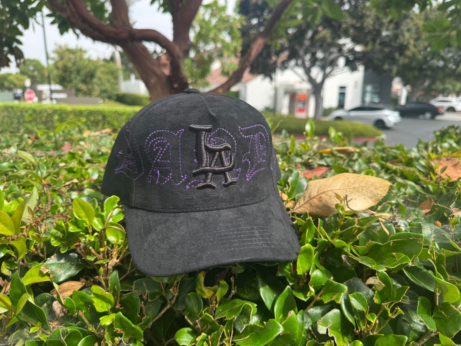 Negra total, con bordado LA al frente y letras moradas que susurran calle, rebeldía y autenticidad.